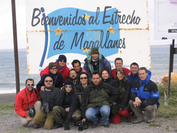 Imagen 1. Foto de grupo de los expedicionarios antes de cruzar a la Tierra del Fuego. (Foto Gabriel Rojas)
