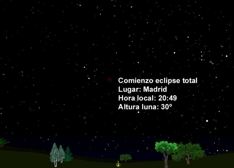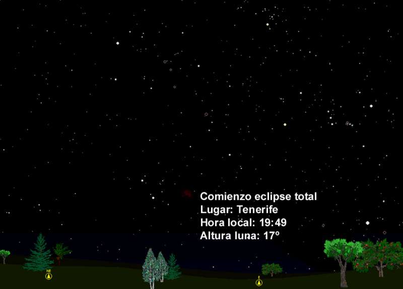 A continuación mostramos dos gráficos con la situación de la Luna en el cielo, en el momento del inicio del eclipse, para Tenerife y Madrid. El próximo eclipse total de Luna, visible desde España, no se producirá hasta el 16 de mayo de 2003.